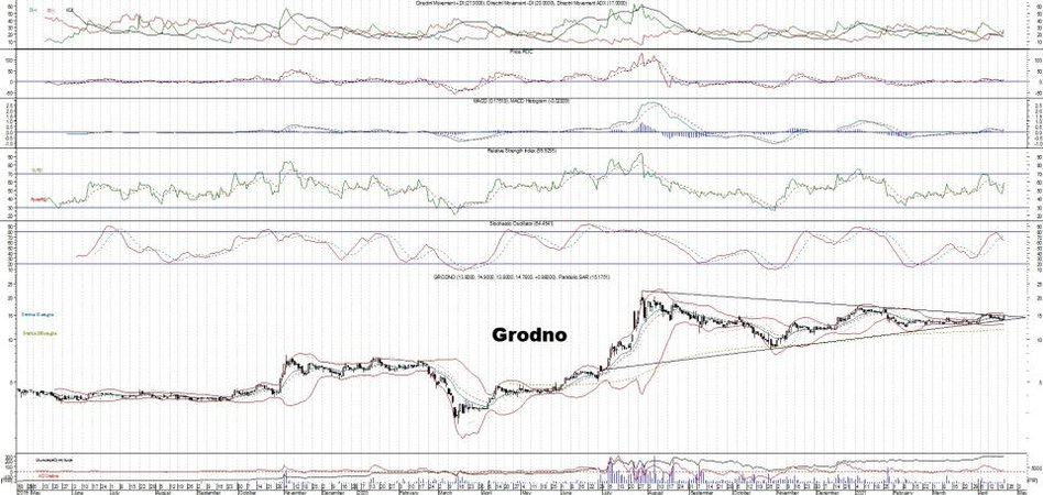 Na przykładzie Atalu i Alumetalu, widać jak bardzo poszczególne segmenty rynku różnią się od WIG20. Pańska trzecia propozycja to Grodno. Kurs akcji jest od dłuższego czasu zamknięty w konsolidacji. Oczekuje pan wybicia górą?