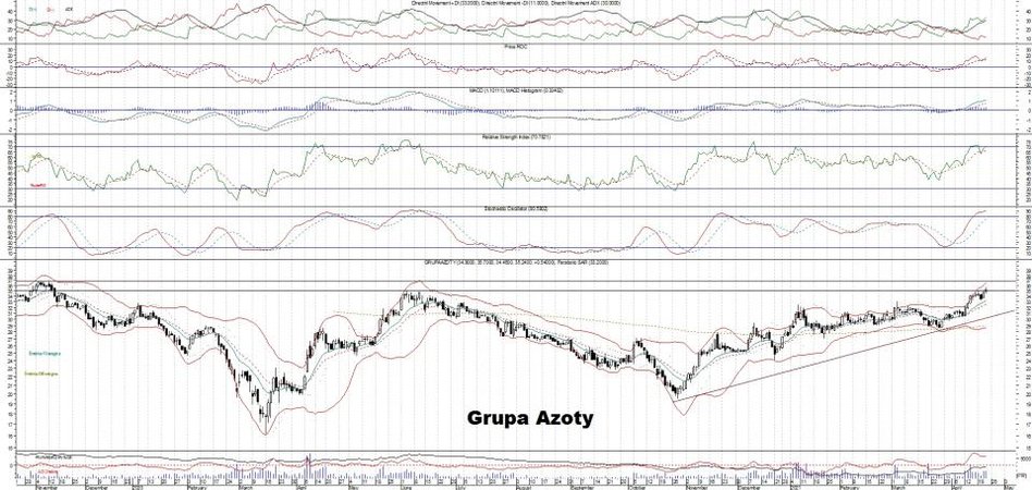 Kolejny typ to przedstawiciel branży chemicznej – Grupa Azoty. Cena rośnie od października i właśnie dotarła do oporu 35 zł. Pokona go?