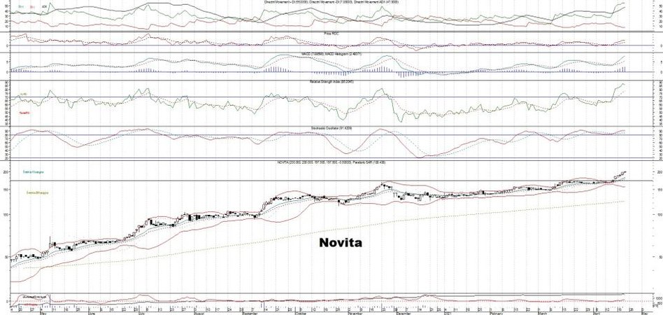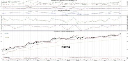 Trochę więcej spokoju jest na wykresie Novity. Akcje systematycznie drożeją, a ostatnio doszło do wybicia z płaskiej korekty.