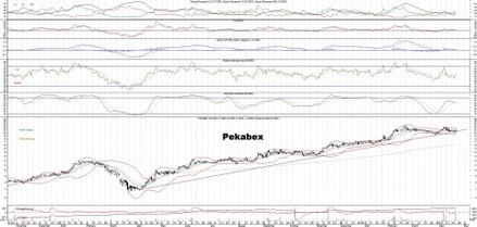 O kilku miesięcy utrzymuje się klasyczny trend. W czwartek doszło do wybicia wyżej na dużym, białym korpusie. Kapitał systematycznie napływa na ten rynek, więc spodziewam się próby pokonania szczytu trendu sprzed tygodnia. Zwłaszcza, że pozytywne sygnały widać na MACD, RSI i DI+ i DI-. Dopóki linia trendu nie zostanie przebita, dopóty nie ma powodów do niepokoju.