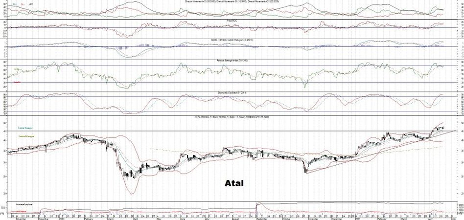 Czynniki makroekonomiczne sprzyjają teraz branży, więc można tutaj przebierać w spółkach. Ja wybrałem Atal. Cena jest w trendzie, ostatnio doszło do korekty w kierunku 45 zł, ale już mamy wyjście na wyższe poziomy, co potwierdza siłę walorów. Wskaźniki i oscylatory sygnalizują przewagę popytu, więc dla tych, którzy lubią trzymać akcje to może być ciekawa propozycja.
