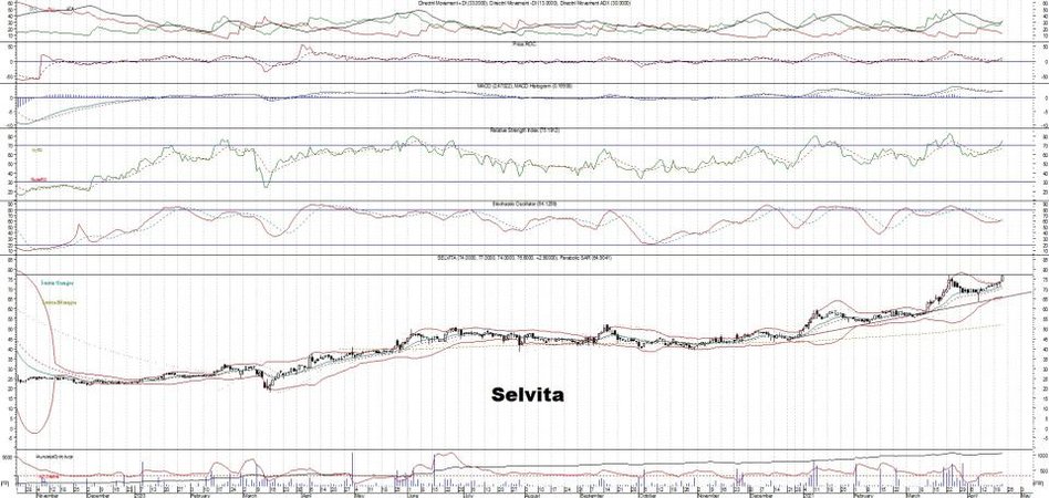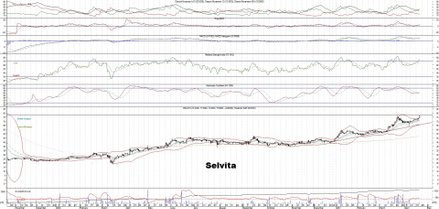 I na koniec Selvita. Cena próbuje właśnie wyjść z krótkoterminowego spodka i kontynuować hossę.