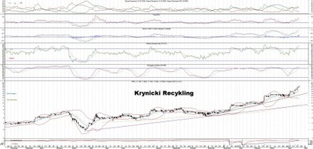Ja lubię grać pod „zielone branże". Fotowoltaika zeszła trochę na plan dalszy, ale m. in. recykling jest moim zdaniem dobrą alternatywą. W przypadku tej spółki mamy silny trend, który próbuje wejść na hiperbolę wzrostową. W takiej sytuacji bardzo trudne jest szacowanie zasięgu. Oscylatory są już wykupione, więc są dwa warianty. Albo ruch po hiperboli albo schłodzenie i powrót do trendu w późniejszym terminie. Jest to więc propozycja z pogranicza spekulacji i inwestycji.