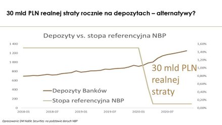 Zacznijmy od wartości depozytów w polskich bankach. Okazuje się, że ich realna wartość topnieje, co powinno sprzyjać przepływie kapitału na inne rynki.