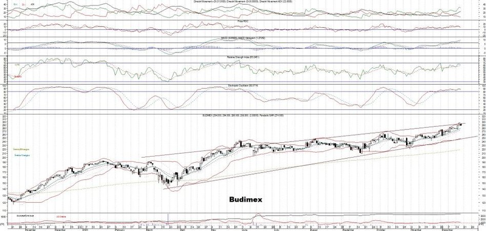 To wykupienie widoczne na wielu wykresach to efekt trwającego już 1,5 miesiąca rajdu św. Mikołaja. Na tym rajdzie skorzystał Budimex, który wyznaczył nowy historyczny szczyt 299 zł. Zabrakło 1 zł do okrągłego poziomu, ale jak pokazuje praktyka, te poziomy mocno oddziałują na decyzje inwestorów.