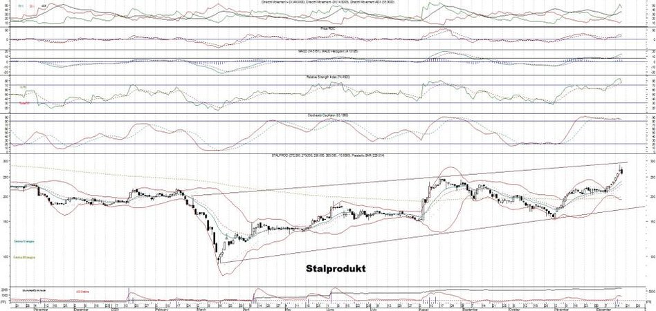 Mam cichą nadzieje, że ten szczyt z początku roku zostanie pokonany. Kurs akcji rośnie od listopada i na wielu wskaźnikach widać już wykupienie. Niemniej taka sygnalizacja widoczna jest na wielu spółkach z GPW i trzeba się z tym liczyć, że korekta jest możliwa. W przypadku producenta aluminium sytuacja na świecach tygodniowych wygląda jednak korzystnie. Ponadto silnym wsparciem jest średnia 13-sesyjna i doszło do wybicia poza górną wstęgę Bollingera. Wolumen jest przyzwoity, więc wydaje mi się, że test wspomnianego szczytu jest możliwy.