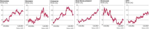 Prawdziwą gwiazdą minionego kwartału okazał się Gekoplast, który został wytypowany przez Millennium DM. Podrożał o ponad jedną trzecią. Pomogła mu informacja z początku sierpnia dotycząca tego, że włoska spółka K-Holding jest zainteresowana zakupem 100 proc. akcji Gekoplastu po cenie 16,55 zł, czyli znacząco wyższej od ówczesnej rynkowej. Bardzo dobrze w III kwartale poradziło sobie również CCC, wytypowane przez Sobiesława Kozłowskiego z Raiffeisen Brokers. Notowania odzieżowej spółki w minionym kwartale zyskały ponad jedną piątą. W tym tygodniu po raz pierwszy w jej historii za akcję płacono ponad 300 zł, a obecnie kurs utrzymuje się nieznacznie poniżej tego poziomu. Z kolei w portfelu DM PKO BP bardzo dobrze radził sobie czeski CEZ, drożejąc o ponad 13 proc. Broker uznał, że czas realizować już na nim zyski i nie zdecydował się na zostawienie tej spółki w portfelu na IV kwartał.