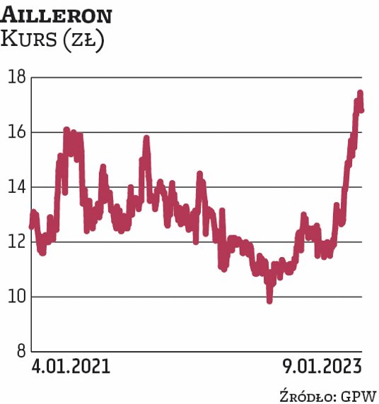 Technologiczna spółka jest faworytem Noble Securities. Analitycy zakładają, że w najbliższych dwóch latach Ailleron będzie w stanie zaoferować inwestorom ponad 5-proc. stopę dywidendy. Od listopada 2022 r. notowania poruszają się w trendzie wzrostowym. Od zeszłorocznego minimum wzrosły prawie dwukrotnie.