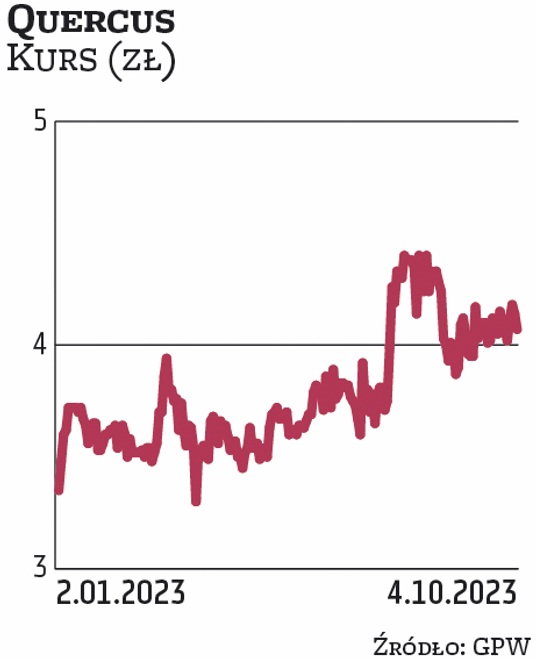 Quercus trafił do portfela na najbliższe trzy miesiące za sprawą Noble Securities. Analitycy spodziewają się, że spółka w 2024 r. będzie hojna dla swoich akcjonariuszy. „Obniżka stopy procentowej w Polsce sprzyja obligacjom i poprawie sentymentu do akcji w szczególności na 2024 r.” – uzasadniają eksperci Noble Securities.