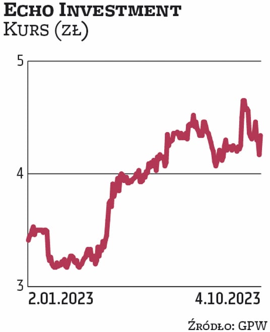 W I półroczu 2023 r. grupa Echo Investment miała 457 mln zł przychodów, ponad 32 mln zł EBIT i 9,1 mln zł zysku netto przypisanego akcjonariuszom jednostki dominującej. Na koniec czerwca grupa dysponowała bankiem ziemi, który umożliwia budowę m.in. 11,6 tys. mieszkań. Spółkę do portfela wytypowało BM Banku BNP.