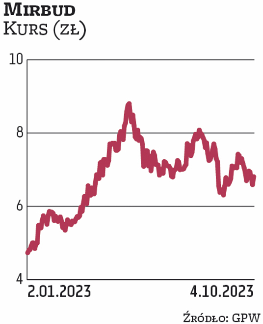Mirbud jest faworytem BM BNP Paribas. W tym roku walne zgromadzenie Mirbudu zdecydowało o wypłacie dywidendy za 2022 r. w łącznej kwocie 23,85 mln zł, czyli 0,26 zł na akcję. Z kolei rok wcześniej spółka wypłaciła 18,35 mln zł, czyli 0,2 zł na papier. Od jesieni zeszłego roku notowania poruszają się w trendzie wzrostowym.