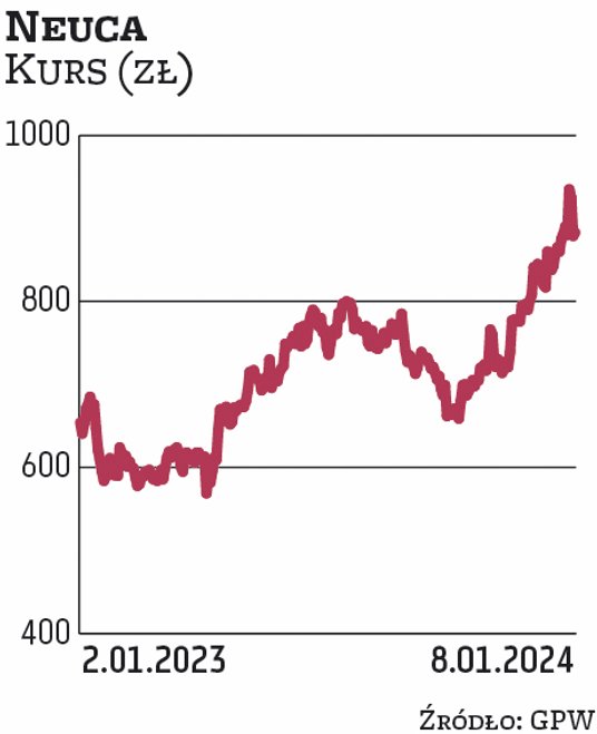 Neuca zakłada, że 2024 r. powinien być dla jej biznesu całkiem dobry. Spodziewa się wzrostu rynku hurtu aptecznego na poziomie 5–6 proc. Spółka dzieli się wypracowanym zyskiem z akcjonariuszami. W 2022 r. wypłaciła 11,5 zł dywidendy na akcję, a w zeszłym roku 13 zł na walor. Do portfela na I kwartał Neucę wytypowało BM BNP.