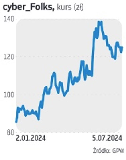 Technologiczna spółka cyber_Folks w tym roku wypłaciła 21,3 mln zł, co daje 1,5 zł dywidendy na akcję. Akcjonariusze zdecydowali także o upoważnieniu zarządu do skupu do 42,5 tys. akcji własnych za maksymalnie 6,8 mln zł. Notowania cyber_Folks poruszają się w trendzie wzrostowym. Na spółkę stawia BM BNP Paribas.