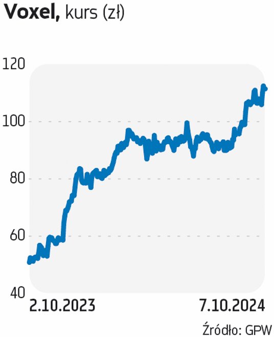 Na spółkę Voxel w IV kwartale postawiło BM Banku Millennium. Liczy, że kurs będzie kontynuował pozytywne trendy. Na początku 2023 r. wynosił niespełna 40 zł, rok później 80 zł, a w zeszłym miesiącu przebił 100 zł. Kapitalizacja medycznej firmy, przy obecnej cenie akcji, przekracza miliard złotych.