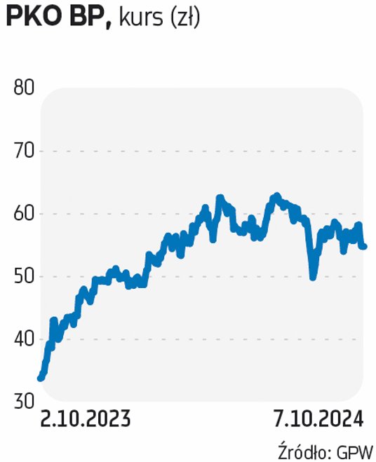 Akcje PKO BP są faworytem Noble Securities oraz BM Banku Millennium. Notowania banku oscylują obecnie w okolicach 53–54 zł. Są o niemal 60 proc. wyżej niż 12 miesięcy temu, ale niżej niż w lipcu, kiedy to kurs wyznaczył maksimum, przebijając poziom 60 zł. Akcjonariusze dostali w tym roku ponad 3,2 mld zł dywidendy.