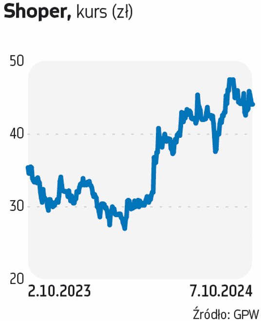 Shoper jest faworytem BM Banku Millennium. Spółka zakłada, że 2024 r. będzie rekordowy pod każdym względem. Sprzyjają jej rynkowe trendy, takie jak rosnący popyt na usługi związane ze sprzedażą wielokanałową. Od wiosny notowania Shopera idą w górę. Obecnie sięgają 46 zł. Niemal tyle samo wynosiła cena w IPO w 2021 r. (47 zł).
