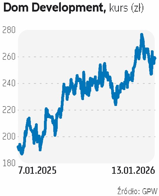 Deweloper ma za sobą udany rok. Zarząd Dom Development zdecydował o wypłacie akcjonariuszom zaliczki na poczet dywidendy za 2025 r. w kwocie 180,6 mln zł, co oznacza, że na akcję przypadło 7 zł. Zaliczka została już wypłacona w grudniu. Do portfela na I kwartał spółkę wytypowały BM BNP oraz BM Banku Millennium.