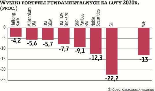 Uczestnicy rywalizacji portfeli fundamentalnych liżą rany po najgorszym miesiącu od lat. Ich straty zapewne byłyby większe, gdyby miesiąc wcześniej nie ograniczyli ekspozycji na segment największych spółek, który okazał się najmniej odporny na globalne zawirowania. Przewaga mniejszych firm w portfelach wprawdzie nie uchroniła ich przed stratami, ale przynajmniej w przypadku większości brokerów okazały się one mniej dotkliwe niż spadki głównych indeksów.