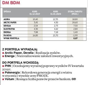 Najczęściej przytaczanym argumentem za wyborem spółki do portfela, oprócz niskiej wyceny wskaźnikowej, były oczekiwania poprawy wyników finansowych. Ponieważ jesteśmy w trakcie sezonu publikacji wyników za IV kwartał (większość spółek ma to jeszcze przed sobą), uwagę ekspertów zwróciły te podmioty, które w ich ocenie będą się miały czym pochwalić. Argument ten miał istotne znaczenie w przypadku takich spółek, jak Amica, Arctic Paper, PHN czy Wirtualna Polska.