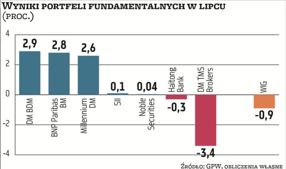 Początek sierpnia przyniósł wyraźne ochłodzenie nastrojów na rynkach akcji, co negatywnie przełożyło się na ceny akcji na warszawskim parkiecie. Jeśli sytuacja szybko się nie ustabilizuje, o zyski może być znacznie trudniej niż w zakończonym miesiącu, który dla większości ekspertów z biur maklerskich, biorących udział w typowaniu firm o mocnych fundamentach, okazał się całkiem udany.