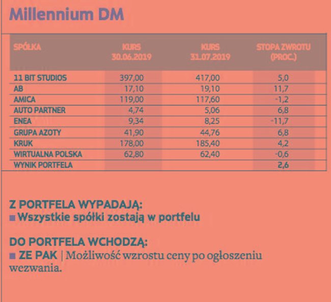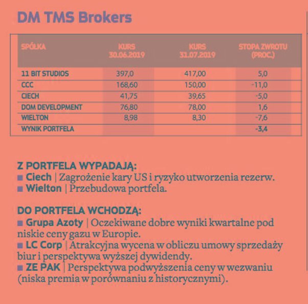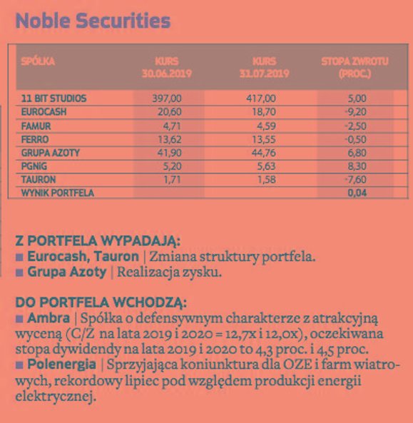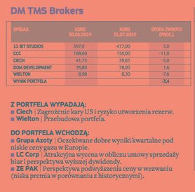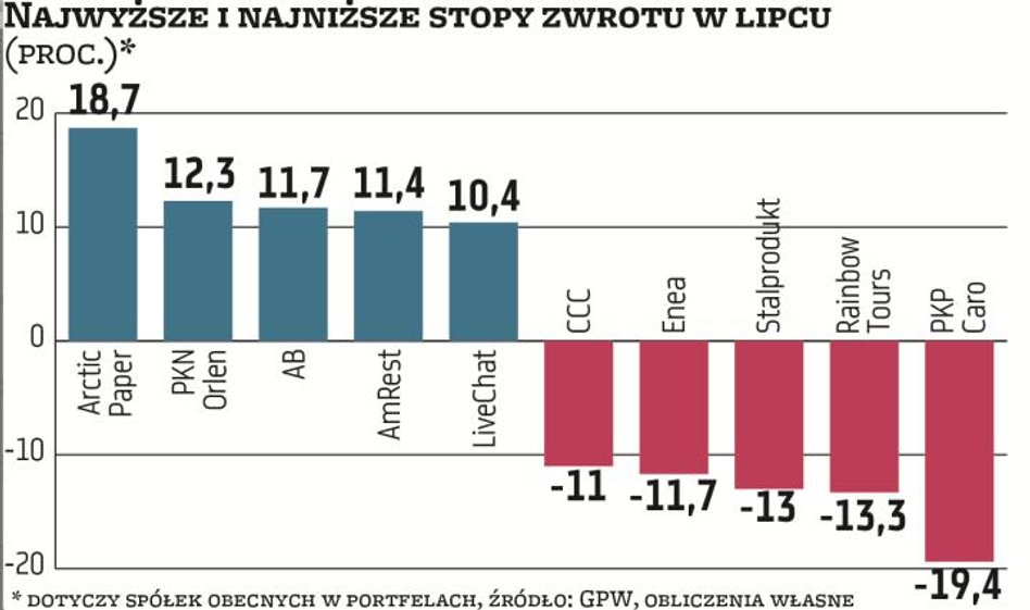 W składzie portfeli na sierpień zaszło trochę zmian, bo kontynuacja odbicia notowań części firm zachęciła do realizacji zysków. W rezultacie w portfelach przygotowanych na kolejny miesiąc zabrakło miejsca dla spółek, które pozwoliły w ostatnim czasie dobrze zarobić (Arctic Paper, PKN Orlen), ale pojawiły się nowe propozycje.