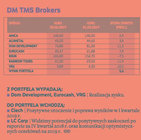 Zyski wypracowane w marcu zachęciły ekspertów do realizacji zysków. Tym bardziej że dwucyfrowe dodatnie stopy zwrotu nie należały w tym okresie do rzadkości. Pod tym względem pozytywnie wyróżniły się papiery CCC, Echo Investment, Ten Square Games czy VRG. W rezultacie w portfelach przygotowanych na kolejny miesiąc zabrakło miejsca dla spółek, które pozwoliły w ostatnim czasie solidnie zarobić, ale pojawiło się sporo nowych propozycji.