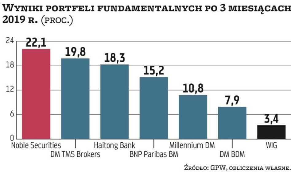 Łącznie od początku 2019 r. wszystkie fundamentalne portfele mogą się pochwalić dodatnią uśrednioną stopą zwrotu na poziomie 15,7 proc., co jest wynikiem wyraźnie lepszym od indeksu WIG, który w tym samym czasie zyskał jedynie 3,4 proc.
