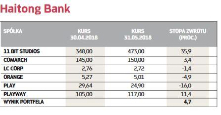 SKŁAD PORTFELA NA CZERWIEC POZOSTAJE BEZ ZMIAN: Ailleron | Alumetal | Auto Partner | Idea Bank | Lentex | Lokum Deweloper | Maxcom | Pekao | PBKM | Wielton