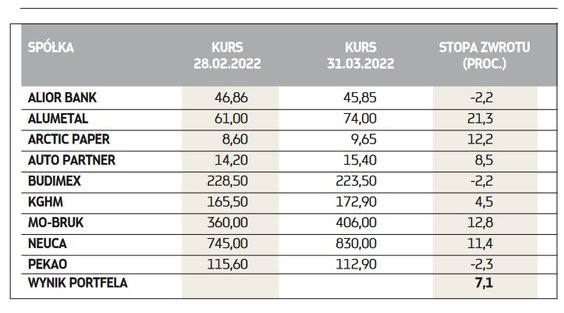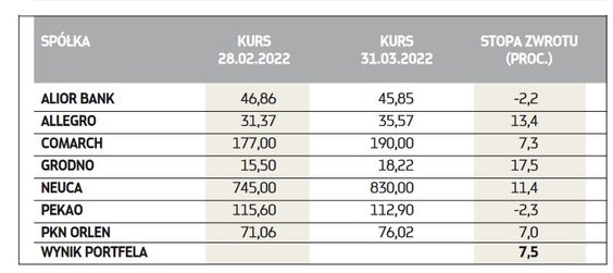Wytypowane na początku marca spółki nie zawiodły uczestników naszej gry. A ponieważ zwycięskiego składu się nie zmienia, to w kwietniu do istotnych roszad w składach portfeli nie doszło. Eksperci wychodzą z założenia, że dobra passa ich spółek w tym miesiącu będzie kontynuowana. Tam, gdzie jednak pojawiły się zmiany, wynikały one z chęci zrealizowania przez ekspertów części zysków. To był główny argument przemawiający za pozbyciem się walorów z portfela. Dlatego z ich składu wypadły akcje firm, które już pozwoliły całkiem sporo zarobić. Ich miejsce zajęły nowe i bardziej obiecujące spółki.