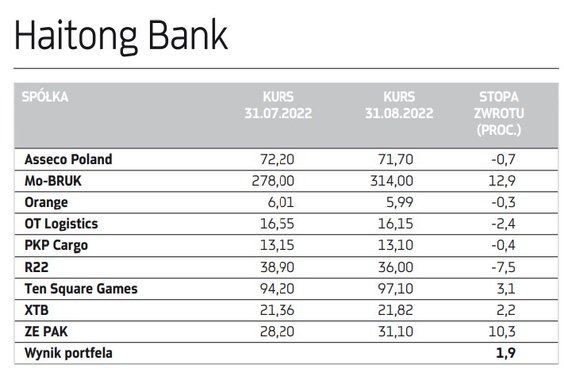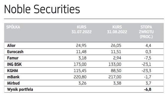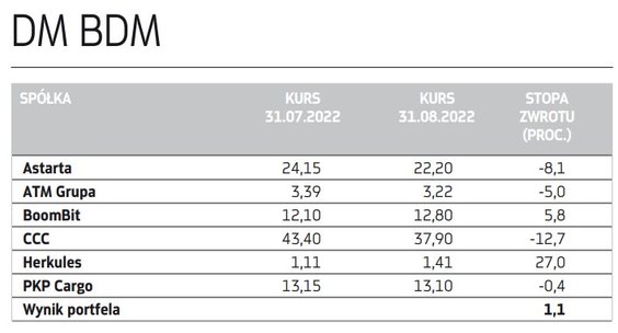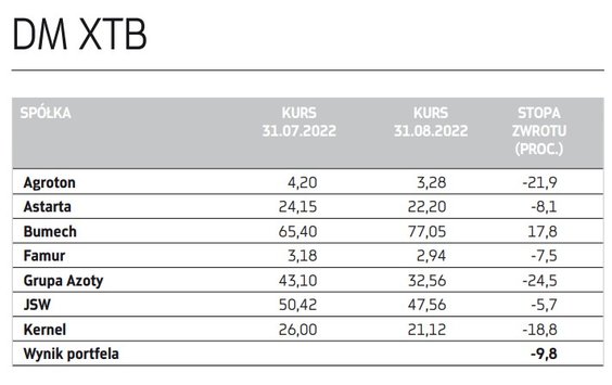 Skład portfela DM XTB na wrzesień pozostaje bez zmian: