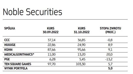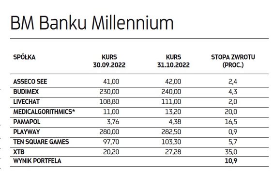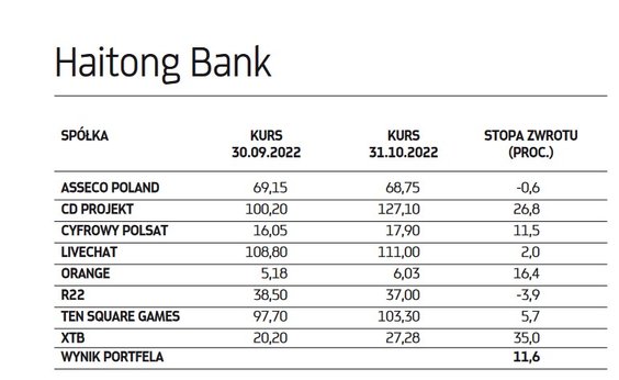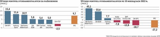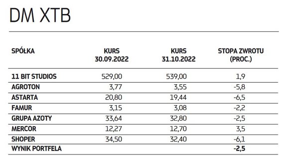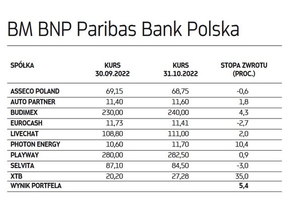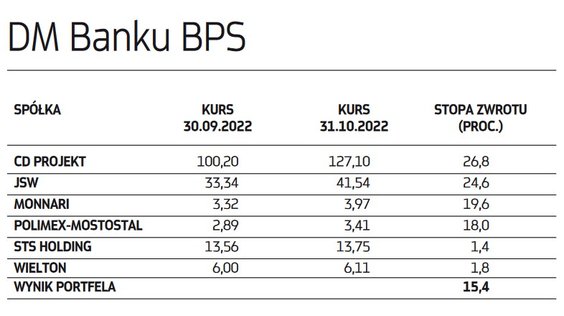 Poprawa nastrojów na warszawskim parkiecie zachęciła inwestorów do zakupów solidnie przecenionych akcji, co pozytywnie przełożyło się na notowania. Polskie akcje wróciły do łask, w wyniku czego krajowe indeksy w minionym miesiącu odzyskały wigor, ochoczo odrabiając straty z poprzednich miesięcy. To efekt poprawy nastrojów wokół naszego rynku, czemu sprzyjały przede wszystkim ostatnie mocne spadki cen energii i gazu zmniejszające obawy o sytuację energetyczną w Europie. W efekcie WIG zanotował najlepszy miesiąc w 2022 r., zyskując prawie 10 proc. Co istotne, zwyżki objęły swoim zasięgiem szeroki rynek akcji, nie wyłączając spółek z WIG20, co znalazło odzwierciedlenie w pozytywnych wynikach portfeli fundamentalnych tworzonych przez ekspertów biorących udział w naszej rywalizacji.
