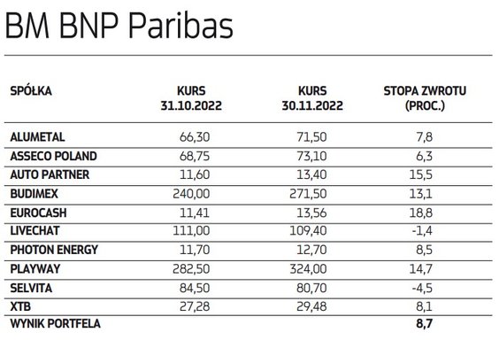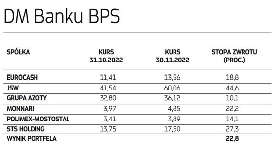Listopad był kolejnym z rzędu miesiącem, w którym koniunktura była bardzo łaskawa dla posiadaczy akcji. Od dołka bessy z połowy października indeks szerokiego rynku WIG odrobił ok. 23 proc. strat, do czego w największym stopniu przysłużyły się największe spółki. Czy również w grudniu eksperci biorący udział w naszej rywalizacji portfeli fundamentalnych mogą liczyć na korzystne warunki do poprawy wyników?