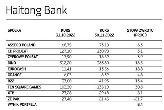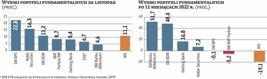 Biura maklerskie biorące udział w naszej rywalizacji portfeli fundamentalnych w zakończonym niedawno miesiącu wykorzystały sprzyjającą koniunkturę, wypracowując efektowne zyski. Przed nami grudzień, który zdecyduje, którzy analitycy najlepiej typowali w tym roku. A walka o czołowe lokaty jest zacięta.