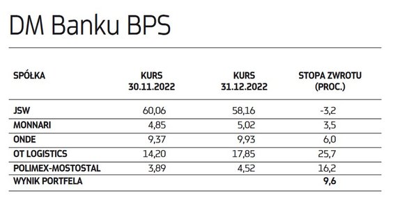 Analitycy biorący udział w typowaniu spółek udowodnili w 2022 r., że są w stanie zarabiać bez względu na koniunkturę na rynku akcji. Kluczem do zysków okazały się odpowiednia selekcja spółek i umiejętność szybkiego reagowania na zmienną sytuację rynkową. Mimo bessy pojawiło się sporo ciekawych okazji. Zawirowania na rynkach związane z wojną sprawiły, że na giełdzie znalazły się nieco zapomniane spółki, które stały się beneficjentami nowej, kryzysowej rzeczywistości, jak np. spółki związane z branżą węglową czy energetyczną, których akcje poszybowały w górę w ślad za cenami węgla i energii.