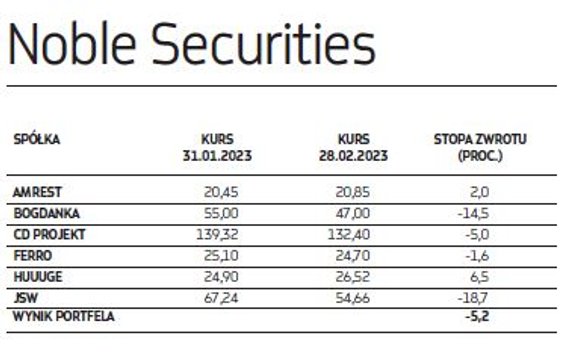 W lutym portfele ekspertów w dziedzinie analizy fundamentów spółek poradziły sobie ze zmiennym szczęściem. Warunki do zarabiania na krajowym rynku akcji w tym okresie nie były bowiem specjalnie sprzyjające. Na warszawską giełdę zawitała korekta, zabierając część wypracowanych w styczniu zysków. Dodatkowych emocji dostarczył inwestorom trwający sezon publikacji raportów wynikowych za IV kwartał i cały 2022 rok, który obfitował zarówno w pozytywne, jak i negatywne zaskoczenia, co zatrzęsło notowaniami niejednej spółki. To wszystko przełożyło się na roszady w portfelach na marzec.