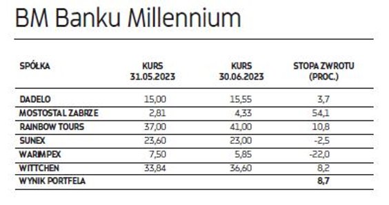 Wytypowane na początku czerwca spółki w większości nie zawiodły analityków biorących udział w naszej rywalizacji. Byli oni w o tyle korzystnej sytuacji, że akcje zdecydowanej większości spółek z warszawskiego parkietu zdrożały, kontynuując pozytywny trend z poprzednich miesięcy. Dwucyfrowe stopy zwrotu w czerwcu nie były niczym nadzwyczajnym. W minionym miesiącu można było dobrze zarobić, zarówno mając w portfelu akcje potentatów z indeksu WIG20, jak i średnich i małych spółek. Dlatego decydując się na roszady w portfelach, typujący chętnie zrealizowali zyski. Największe przyniosły w czerwcu akcje Mostostalu Zabrze, których cena poszybowała w górę o ponad 54 proc. Ta spółka miała istotny wpływ na wynik portfela lidera czerwcowej rywalizacji. Notowania budowlanej firmy od dłuższego czasu pozostają w trendzie wzrostowym, ale w ostatnim miesiącu zwyżki wyraźnie przyspieszyły za sprawą pozytywnego rozstrzygnięcia sporu z Wood. To sprawiło, że rynek nabrał większego zaufania do spółki, za którą przemawiają także solidne wyniki.