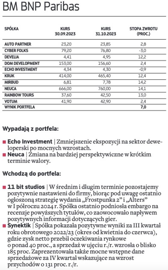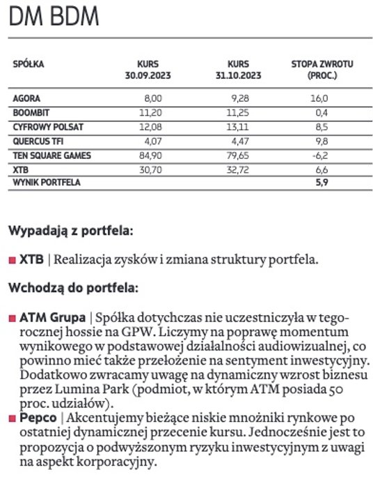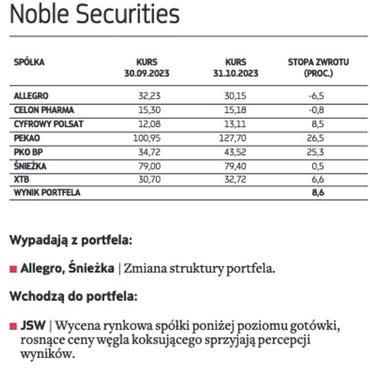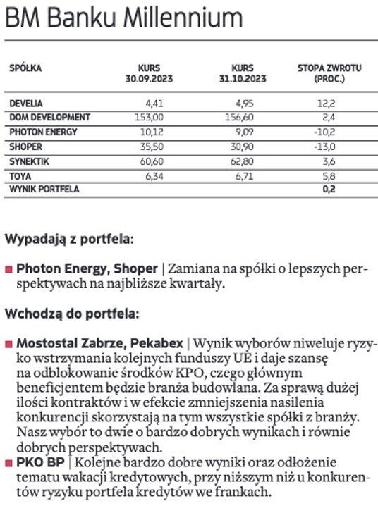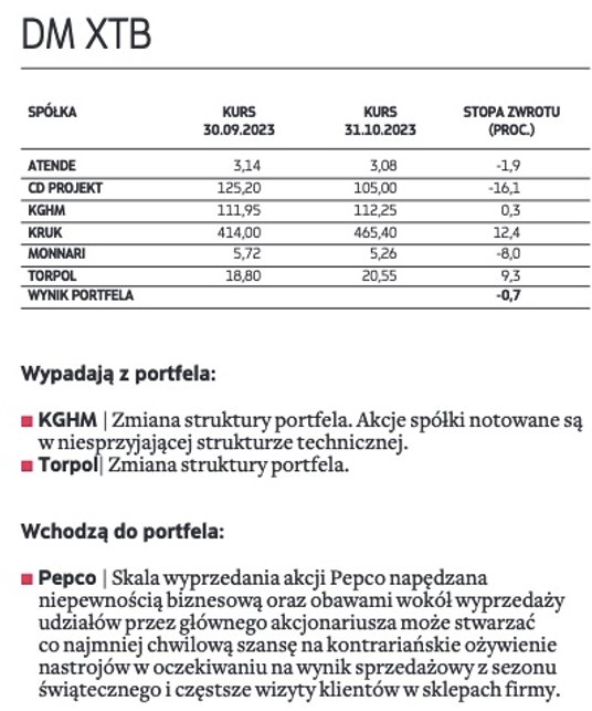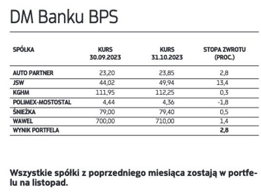 Wygrana opozycji i szanse z tym związane dla rynku całkowicie zmieniły układ sił na warszawskim parkiecie. Niemal w jednej chwili zmieniło się bowiem postrzeganie wielu sektorów z warszawskiego parkietu. Przede wszystkim typujący nieco łaskawiej spojrzeli na spółki z indeksu WIG20, z bankami i spółkami Skarbu Państwa na czele, które należą do największych beneficjentów powrotu zagranicznych inwestorów na nasz rynek akcji. Do tego wyceny w tym segmencie w wielu przypadkach wyglądają atrakcyjniej niż mniejszych spółek. Wśród spółek, które jako nowe pojawiły się w portfelach, typujący największe nadzieje wiążą z PKO BP i JSW. Na celowniku typujących, choć z zupełnie innych powodów, pojawiło się także Pepco Group. W ocenie analityków ostatnia solidna przecena walorów spółki, niemająca silnego fundamentalnego uzasadnienia, w połączeniu z sezonowym szczytem zakupów przypadającym tradycyjnie na ostatni kwartał roku może być dobrą okazją do kupna przecenionych walorów handlowej grupy.