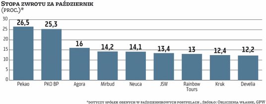 Wygrana partii opozycyjnych w październikowych wyborach i bardzo prawdopodobna zmiana władzy w Polsce dały inwestorom mocny impuls do zakupów. W efekcie silnych zwyżek, które w największym stopniu objęły segment największych firm, zakończony niedawno miesiąc pod względem stopy zwrotu był najlepszy dla indeksu WIG od początku roku, który w skali miesiąca zyskał aż 9,5 proc. Znacznie efektowniej wypadł WIG20, który poszybował w górę o 12,2 proc. przy wsparciu mocno drożejących akcji państwowych potentatów.