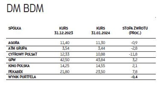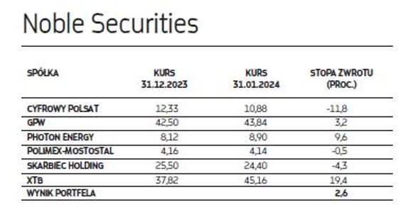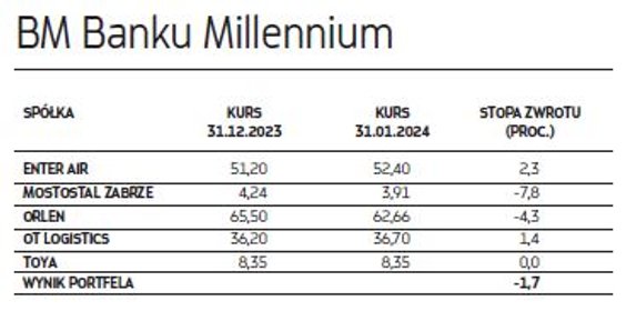 Początek roku przyniósł wyraźne schłodzenie nastrojów na warszawskiej giełdzie, co znalazło odzwierciedlenie w wynikach styczniowych portfeli fundamentalnych prezentowanych w „Parkiecie” przez zespoły biur maklerskich. Po udanym 2023 r. na rynek zawitała korekta, która zabrała posiadaczom akcji część zysków z bardzo udanych poprzednich miesięcy. WIG po wyznaczeniu z końcem grudnia nowego szczytu wszech czasów na poziomie powyżej 79 tys. pkt nieco obniżył loty. Na szczęście korekta nie była zbyt głęboka, a już w końcówce stycznia indeksy odrobiły część strat.