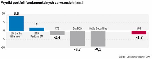 Zmienne nastroje na krajowym rynku akcji we wrześniu okazały się sporym wyzwaniem dla uczestników rywalizacji portfeli fundamentalnych. Słabość krajowych indeksów wynikała z pogorszenia nastrojów na rynkach globalnych (choć w drugiej połowie miesiąca nastąpiła poprawa), ale i wewnętrznej słabości sporej grupy spółek, którym z hossą przestało być po drodze. To oczywiście nie pozostało bez wpływu na wrześniowe stopy zwrotu z portfeli, które były nadzwyczaj mocno zróżnicowane.