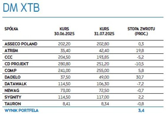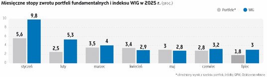 Krajowy rynek akcji w tym roku nie przestaje pozytywnie zaskakiwać, stwarzając inwestorom i uczestnikom rywalizacji portfeli fundamentalnych bardzo korzystne warunki do udanych inwestycji. Niesłabnący popyt sprawił, że krajowe indeksy pozostały na wzrostowej ścieżce, wspinając się na nowe szczyty hossy. Lipiec był kolejnym ósmym miesiącem z rzędu, w którym krajowe indeksy poprawiły notowania. Tym razem WIG dołożył nieco ponad 3 proc. wzrostu. Tegoroczny wzrost sprawił, że WIG może się pochwalić stopą zwrotu wynoszącą niemal 36 proc. Warszawska giełda w dalszym ciągu korzystała z dobrej koniunktury na pozostałych rynkach akcji, gdzie inwestorzy z optymizmem wypatrywali końca negocjacji i porozumień w sprawie nowych stawek celnych, które oddaliłyby ryzyko globalnej wojny handlowej. Ich oczekiwania zostały spełnione w końcówce lipca, tuż przed upływem wyznaczonego przez Amerykanów terminu, gdy ogłoszono porozumienia handlowe Stanów Zjednoczonych z Unią Europejską i Japonią.