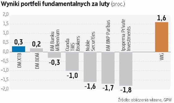 Pod względem wypracowanych stóp zwrotu z portfeli zakończony niedawno miesiąc nie wypadł udanie. Większość uczestników rywalizacji zamiast oczekiwanych zysków musiała przełknąć stratę. W lutym uśredniona stopa zwrotu ze wszystkich portfeli była ok. 0,8 proc. pod kreską, co jednocześnie jest wynikiem wyraźnie słabszym od szerokiego rynku – indeks WIG w tym czasie zyskał prawie 1,6 proc. Skromnym zyskiem mogą pochwalić się jedynie portfele analityków DM BDM i DM XTB.