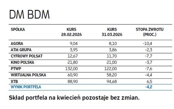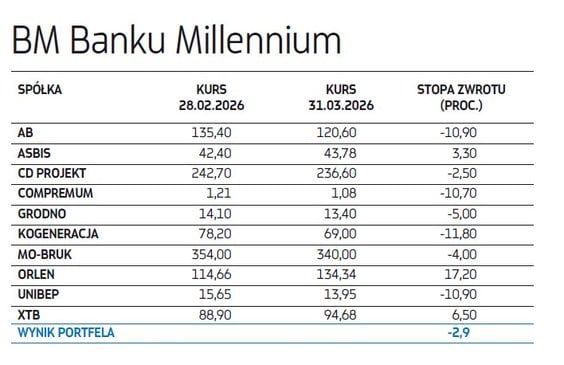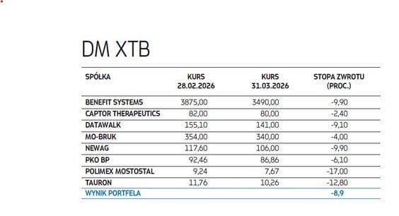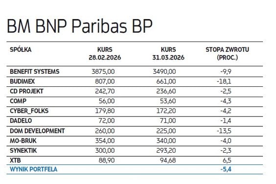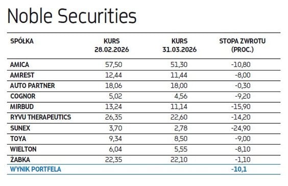 Spółki, na które postawili przed miesiącem eksperci, w zdecydowanej większości nie przyniosły oczekiwanych zysków. Największy zawód wśród walorów obecnych w marcowych portfelach sprawiły akcje Suneksu, które w skali całego miesiąca przyniosły ich posiadaczom niemal 25 - proc. stratę. Mocno rozczarował także Budimex, którego akcje z początkiem marca weszły w korektę. Od szczytu z lutego ich wartość stopniała już o blisko 20 proc. Nie pomogły nawet solidne wyniki za IV kwartał i cały 2025 r. Wśród analityków przeważają opinie, że spółka po ostatniej fali zwyżek była zbyt optymistycznie wyceniana, więc korekta była jak najbardziej uzasadniona. Słabo wypadły także inne spółki z branży budowlanej Polimex-Mostostal i Mirbud, których akcje przyniosły kilkunastoprocentowe straty.