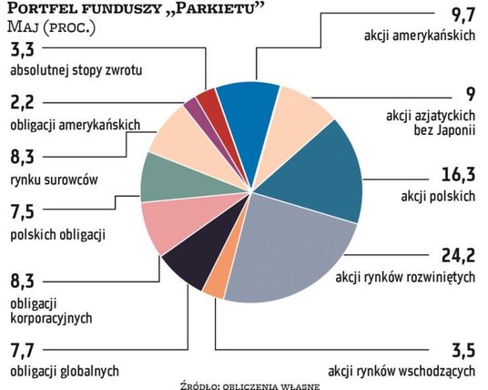 Pierwszy miesiąc w nowym składzie uczestników portfela funduszy „Parkietu" okazał się bardzo pomyślny. Stopy zwrotu zarządzających sięgają od 1,6 proc. do 3,56 proc. Bardzo rzadko zdarzało się, by któryś z dobranych do portfeli funduszy w kwietniu nie przyniósł zysku, a jeśli już, to dotyczyło to funduszy polskich obligacji skarbowych. Był to efekt istotnego wzrostu rentowności obligacji pod koniec kwietnia. Najlepiej zaś wypadły fundusze akcji rynków rozwiniętych, w tym oczywiście amerykańskich, spółek technologicznych, a także surowców.