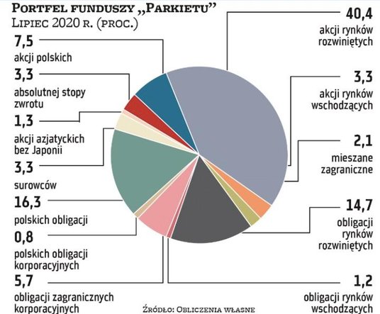 Stąd w portfelu funduszy „Parkietu" na lipiec aż o niemal 10 pkt proc. rośnie udział funduszy akcji rynków rozwiniętych. Obecnie przekraczają one 40 proc. łącznych aktywów. Zwiększenie pozycji w tego typu funduszach odbyło się kosztem funduszy obligacji. Praktycznie każda grupa dłużna odnotowała spadek. Największy w porównaniu z czerwcem nastąpił w przypadku funduszy obligacji rynków rozwiniętych. W lipcu w takich funduszach analitycy proponują utrzymywać niecałe 15 proc. kapitału w porównaniu z blisko 22 proc. przed miesiącem. W przypadku pozostałych grup funduszy dłużnych spadek nie przekroczył 1,2 pkt proc. Ubyło też nieco środków w funduszach absolutnej stopy zwrotu. W przypadku funduszy akcji polskich zaangażowanie nie zmieniło się w porównaniu z czerwcem i wynosi 7,5 proc. Poza akcjami rynków rozwiniętych zyskały jeszcze dwie kategorie funduszy: surowców oraz akcji azjatyckich rynków wschodzących.