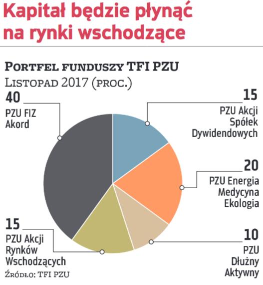 Przyznaję, że październikowe zachowanie portfela było nieco rozczarowujące. Największą przecenę zanotował fundusz PZU Energia Medycyna Ekologia, który zareagował na bardzo dużą zmienność kursów spółek medycznych w USA. Przecenę spowodowały rewizje prognoz przyszłych zysków przez największe firmy. Na informację, że zyski mogą być niższe od wcześniej zakładanych, inwestorzy zareagowali wyprzedażą, obniżającą wyceny nawet o kilkanaście procent. Biorąc jednak pod uwagę fundamenty sektora oraz niedowartościowanie względem szerokiego rynku, postanowiłem utrzymać tę pozycję, nieznacznie ją zmniejszając, aby wygospodarować miejsce na nowy fundusz – PZU Akcji Rynków Wschodzących. Pojawia się on jako konsekwencja udziału naszych przedstawicieli w konferencji MFW w Waszyngtonie, w trakcie której pojawiło się wiele argumentów za dalszym napływem aktywów na giełdy emerging markets. Portfel naszego funduszu opiera się na ETF-ach śledzących wybrane indeksy – wymienia Czyrko. W minionym miesiącu inwestycja TFI PZU straciła 3,6 proc.