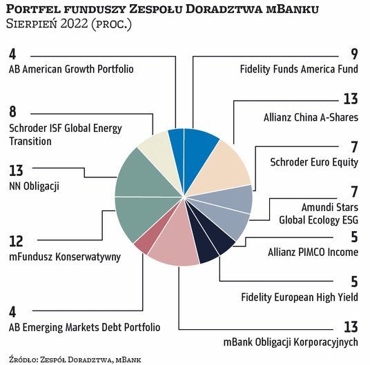 Pod względem wyników najlepszym zestawem okazały się w lipcu bardziej ryzykowne portfele funduszy, nastawione na rynek amerykański. Z drugiej strony w dłuższym terminie to one przyniosły największe na tle szóstki portfeli straty. W lipcu można było jednak solidnie zarobić także dzięki bardziej bezpiecznym portfelom, opartym na rynku długu. Był to miesiąc gwałtownych spadków rentowności papierów skarbowych, wraz z nasilającymi się obawami o rozwój gospodarczy. To właśnie zachowanie banków centralnych w obliczu hamującej gospodarki oraz wysokiej inflacji będzie kluczowe dla perspektyw gospodarczych i zachowania poszczególnych aktywów.