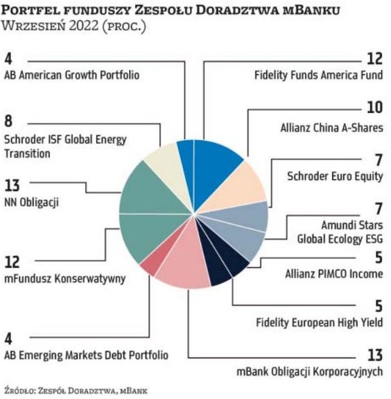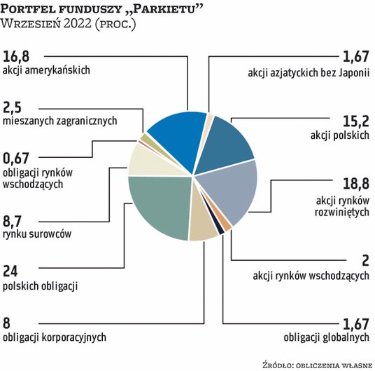 Na wrzesień utrzymuję strukturę portfela funduszy z poprzedniego miesiąca. Oznacza to, że portfel będzie się składał w 35 proc. z funduszy akcji rynków rozwiniętych, a w 25 proc. z funduszy akcji polskich. Do tego około 25 proc. aktywów utrzymuję w dwóch funduszach surowców, a pozostałe 15 proc. kapitału w polskich obligacjach skarbowych.
