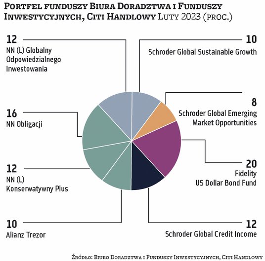 Rynkowa układanka jest więc dość skomplikowana – obóz byków liczy na kontynuację styczniowych zwyżek, wyceniając już odreagowanie gospodarcze, z kolei druga strona rynku żyje wciąż nieosiągniętym dołkiem koniunktury gospodarczej i spadającymi zyskami spółek. Rozbieżności w odczycie rynkowej sytuacji widać po stanowisku zarządzających portfelami funduszy, które prezentujemy poniżej. Przykładowo Jędrzej Janiak z F-Trust wprowadza do dotychczas w całości zbudowanego z funduszy dłużnych portfela fundusz akcji polskich. Co więcej, jego plan na kolejne miesiące zakłada wzrost zaangażowania w akcje rynków wschodzących. Podobnie eksperci BM Santandera zamieniają fundusz dłużny na akcji polskich. Z kolei Mariusz Nowak z BM Pekao ocenia, że to akcje amerykańskie pozostają relatywnie bardziej atrakcyjne.