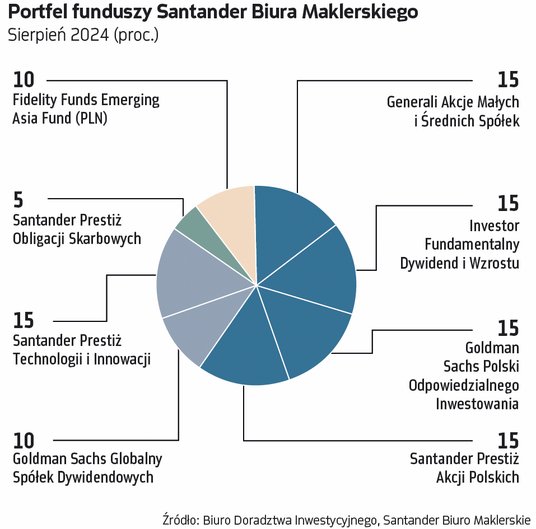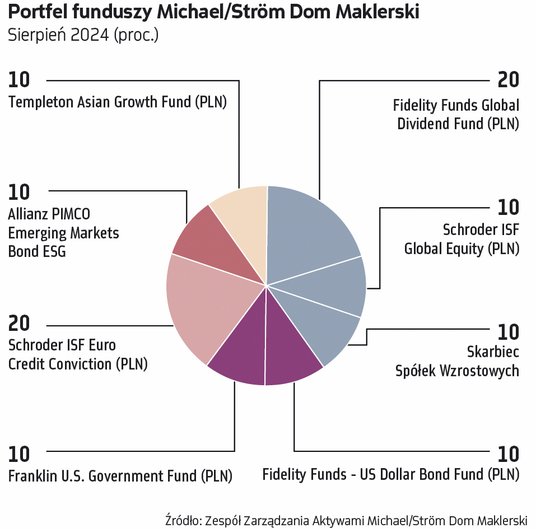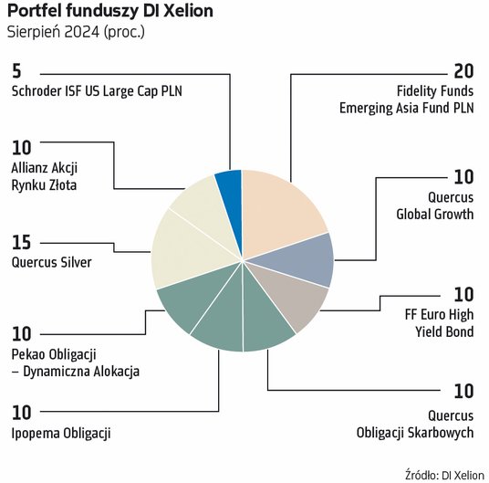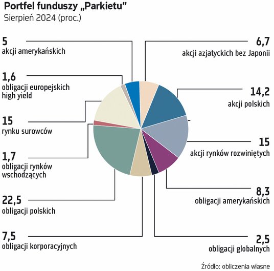 W okresach takich jak ten, czyli strachu i paniki, trudno cokolwiek przewidywać. Rynki spychają w dół obawy o recesję w USA, o której inwestorzy mieli prawo już zapomnieć. Korekta akcji zaczęła się w połowie lipca, ale o drastycznym pogorszeniu atmosfery zdecydowały piątkowe dane z amerykańskiego rynku pracy. Można się oczywiście spierać, czy reakcja rynków nie jest na wyrost. Optymiści mogą wciąż snuć nadzieje, że ryzyko recesji się nie ziści, a to mogłoby oznaczać zwrot i rajd w drugą stronę. Rynek pozostaje jednak bezwzględny, o czym świadczą poniedziałkowe spadki akcji i zwyżki obligacji. Być może we wrześniu hossa powróci, a wakacyjne spadki będziemy wspominać jako „wymuszenie” przez rynek głębszych cięć stóp procentowych przez Fed. Jak na razie wiadomo tyle, że zwycięzcami są ci, którzy zdążyli zawczasu ograniczyć ryzyko portfela. – Jesteśmy bardzo zadowoleni ze zmian, które wprowadziliśmy na początku lipca, zarówno z dalszej redukcji ekspozycji na globalne akcje, jak i ze znaczącego wzrostu alokacji w długoterminowym długu skarbowym – mówi Kamil Cisowski z DI Xeliona. W zeszłym miesiącu ekspert zainkasował 0,5 proc. zysku, co po czterech miesiącach tej edycji portfeli funduszy „Parkietu” daje mu łącznie 5,18 proc.
